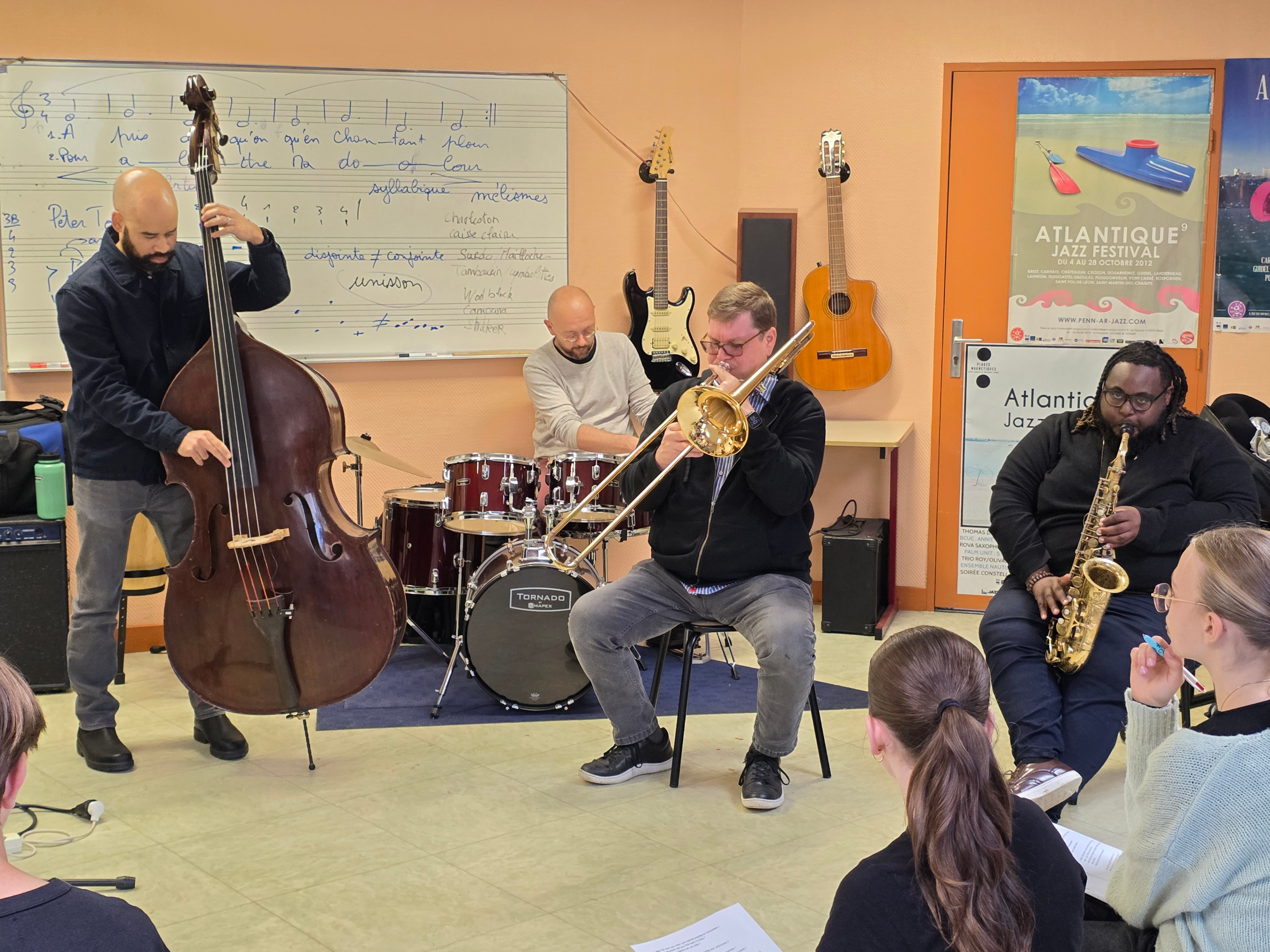 Rencontre musicale entre the Bridge et le brass band du collège